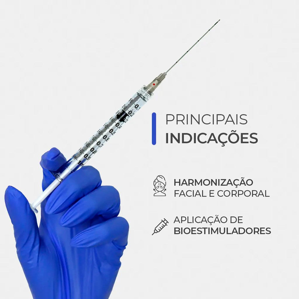 Principais indicações: Perfeito para procedimentos estéticos como entrega de ativos de mesoterapia; Preenchedores faciais e corporais; Bioestimuladores faciais e corporais.